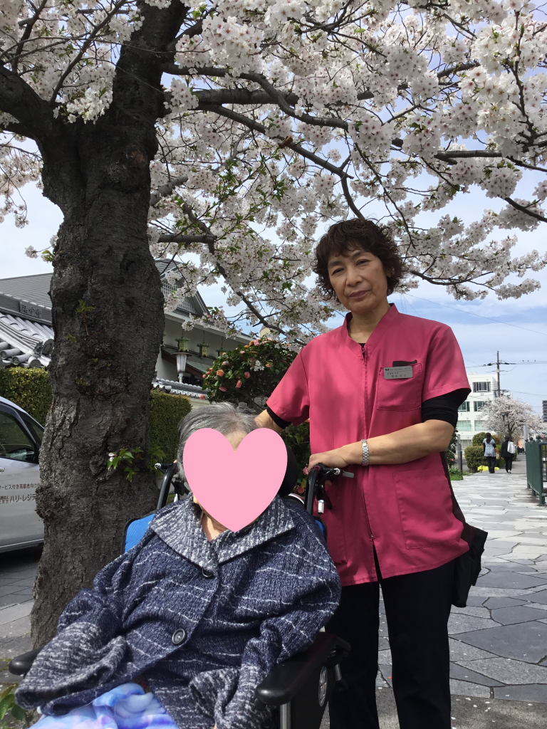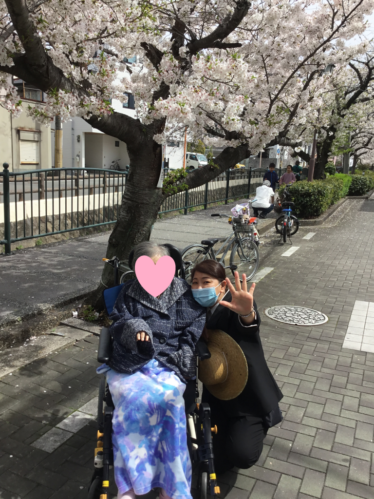 満開の桜を見てとても喜ばれ、その笑顔にスタッフ一同も心が温かくなりました。