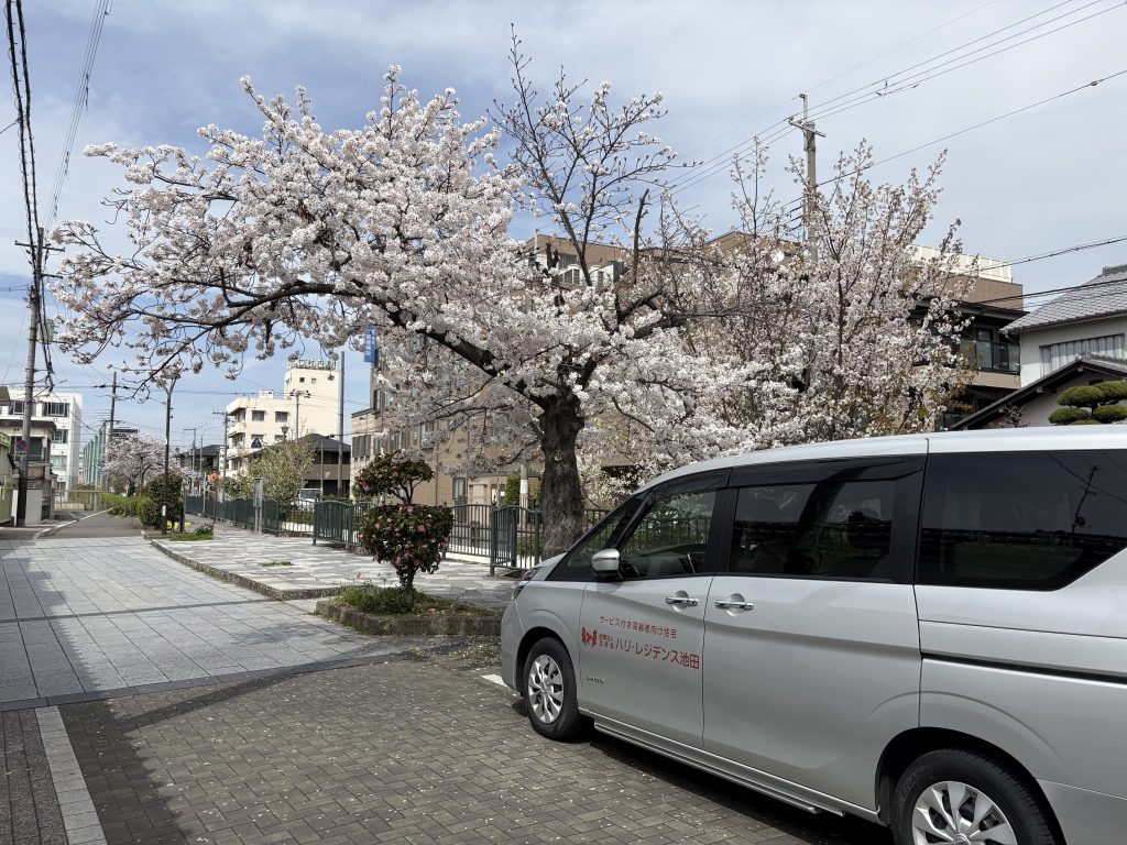 暖かな春の日差しの中、レジデンスでは4月6日~4月10日に長瀬川沿い延命寺周辺で、今年もお花見イベントを開催しました。雨の日もあり、車中から桜を見ていただく事もありましたが、満開の桜に囲まれ皆様と楽しいひとときを過ごさせていただきました。